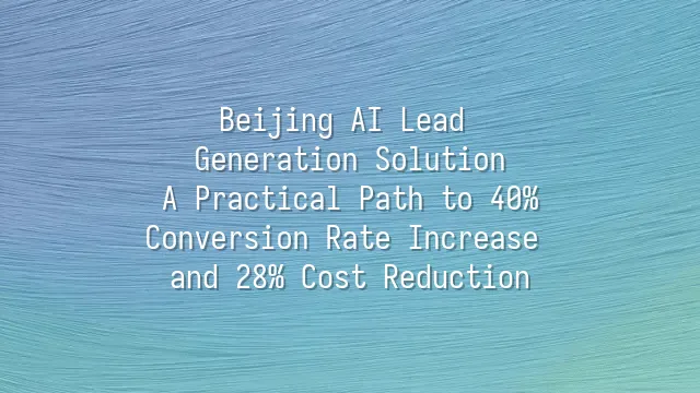 Beijing AI Lead Generation Solution: A Practical Path to 40% Conversion Rate Increase and 28% Cost Reduction