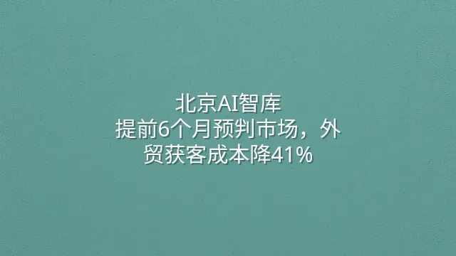传统外贸获客模式正在崩塌。北京AI智库正以AI驱动的趋势洞察,重构2025年全球获客逻辑——提前6个月预判市场拐点,实现成本下降41%、转化提速3倍。